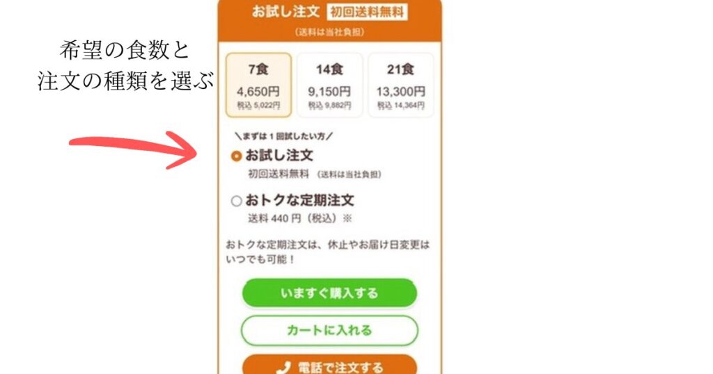 注文の種類を選ぶ(お試し注文/定期注文)